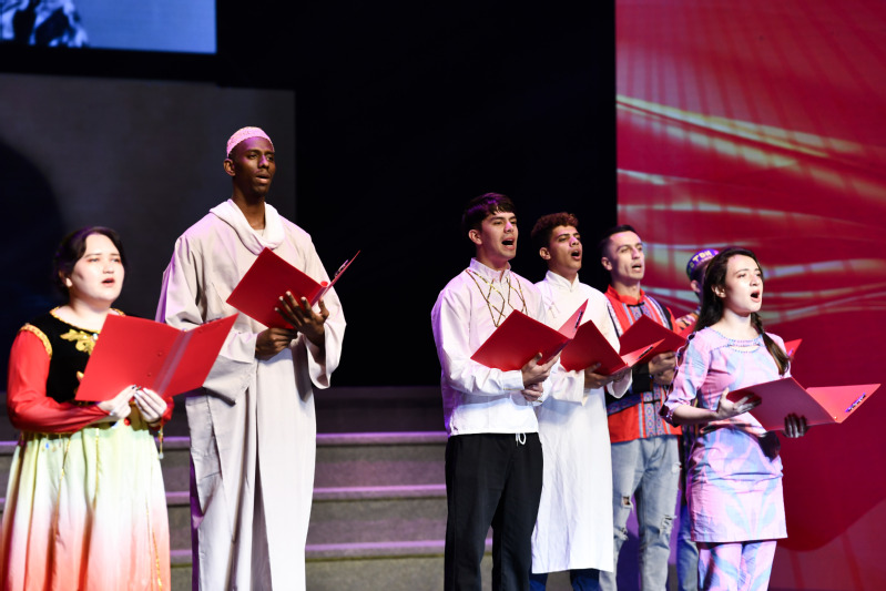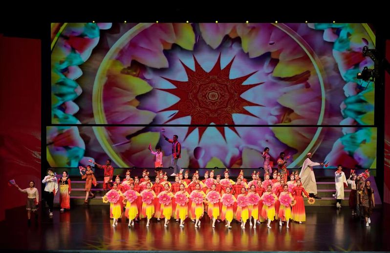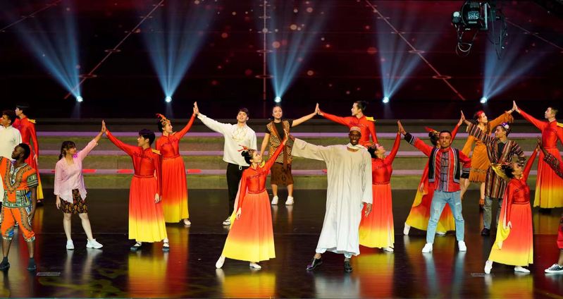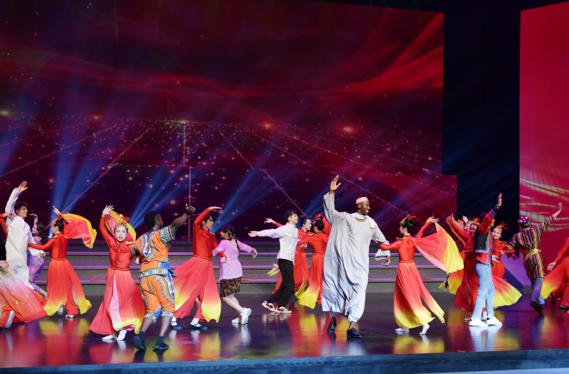 晚会分为《站起来·东方红》《富起来·春天的故事》《强起来·领航新时代》三个篇章。由我校人文与教师教育学院黄莹、吴莉兰老师指导、人文与教师教育学院与海外教育学院中外学生共同演出的歌舞节目《在中国大地上》在第二章上演。节目以《我们走在大路上》《年轻的朋友来相会》《在中国大地上》等3首歌曲的华彩片段为背景演绎。我校的学子们用精彩的舞蹈展现了改革开放以来日新月异的发展变化,博得了现场观众的阵阵喝彩。海外教育学院留学生用流利的中文朗诵《我爱这土地》,参与表演的苏丹留学生薛阳说:“我从苏丹来到5123五四海开奖一站学习已经四年了,这里已成为我生命里不可分割的部分。就像诗里表达的一样,我爱中国这块土地,能在中国读书,我感到自豪,希望中国越来越好。”