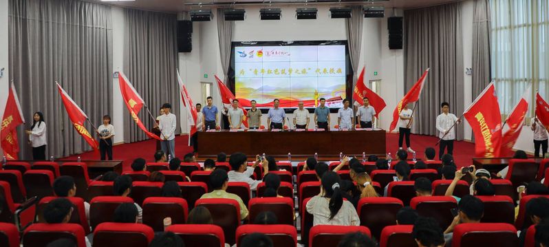 7月6日下午,我校2021年暑期社会实践暨“青马工程”现场教学活动出征仪式在圣农报告厅举行。校领导肖铮、廖斌出席活动,宣传部、学工部、教务处、保卫处、马克思主义学院、校团委等部门负责人,各二级学院党委副书记、分团委负责老师以及学生代表200多人参加了此次出征仪式,相关部门负责人为暑期社会实践重点团队代表授旗。