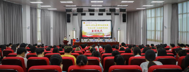 出征仪式上,校团委负责人对2021年暑期社会实践活动安排作了阐释说明。商学院黄春安老师作暑期社会实践典型经验分享,“乡建荟”团队代表江嘉伟同学与“第十二期青马班”红培研学团队代表李凯同学分别作表态发言。