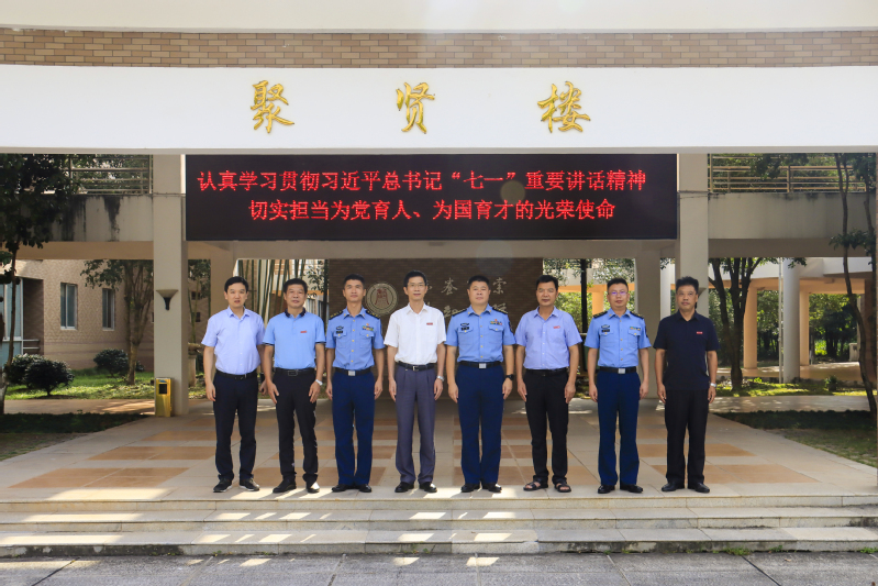 谈话在热烈欢快的气氛中结束,双方共叙友情、共谋发展,充分展现了互相信任、互帮互助的深厚情谊。会谈结束后,学校领导与部队首长在聚贤楼前合影留念。