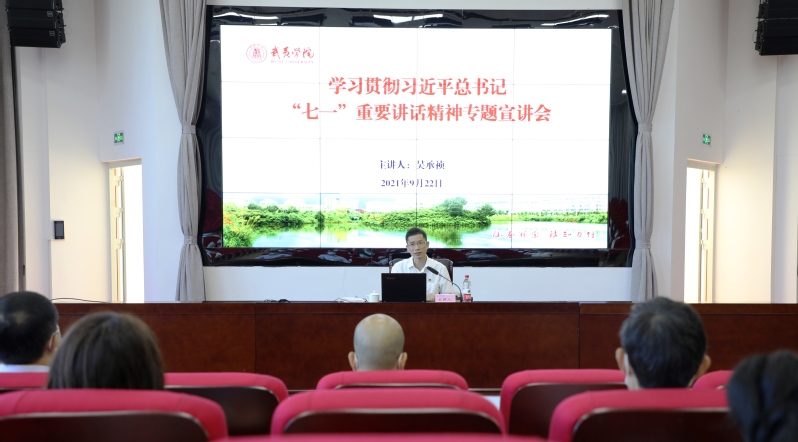 9月22日,校党委副书记、校长吴承祯在圣农报告厅作学习贯彻习近平总书记“七一”重要讲话精神专题宣讲报告。