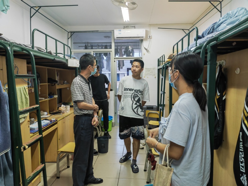 每到一间宿舍,校领导都亲切询问同学们的家庭情况,向他们表达了学校的关怀和慰问,并叮嘱同学们在疫情防控期间一定要认真做好个人防护,遵守学校疫情防控各项规定,时刻保持疫情防控意识,合理安排时间、规律生活,以良好的精神面貌迎接崭新的大学校园生活。