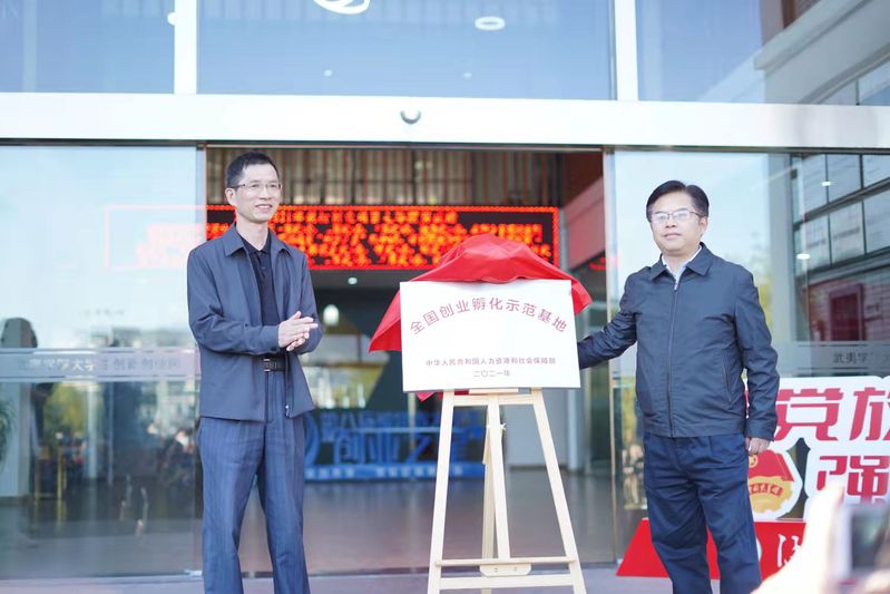授牌仪式上,庄祥生对省人社厅长期以来对我校大学生创新创业工作的关心和支持表示衷心感谢。廖斌介绍了我校全国深化创新创业教育改革示范校和创业孵化示范基地建设情况。童长峰和吴承祯共同为基地揭牌。