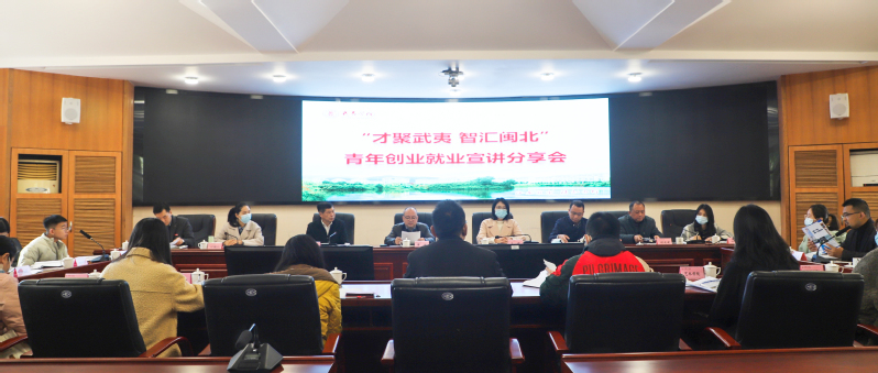 为贯彻落实《教育部关于做好2022届全国普通高校毕业生就业创业工作的通知》文件精神,12月10日,我校举办“才聚武夷 智汇闽北”青年创业就业宣讲分享会。本次分享会由校团委和武夷山市委人才办、武夷山团市委联合举办。校党委委员、副校长廖斌,武夷山市人民政府副市长王君,武夷山市委组织部、武夷山市人社局、武夷山团市委负责人,校学生工作部、校团委和各二级学院分团委负责人,2022届毕业班辅导员和毕业生代表参加分享会。