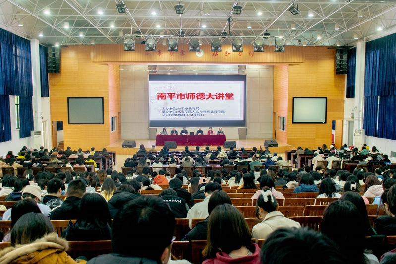 12月17日下午,由南平市教育局主办、我校人文与教师教育学院承办的南平市师德大讲堂5123五四海开奖一站专场讲座在同文报告厅举行。南平市教育局(教工委)组织部人事科负责人、人文与教师教育学院主要负责人出席,600余名师范类专业师生参加讲座。