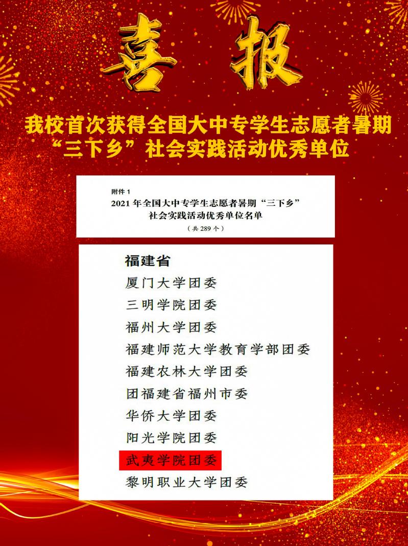 近日,团中央青年发展部发布《关于2021年度全国社会实践活动的通报》,我校团委荣获2021年度全国大中专学生志愿者暑期“三下乡”社会实践活动“优秀单位”荣誉称号。这是我校首次获此殊荣,实现社会实践工作新的突破。