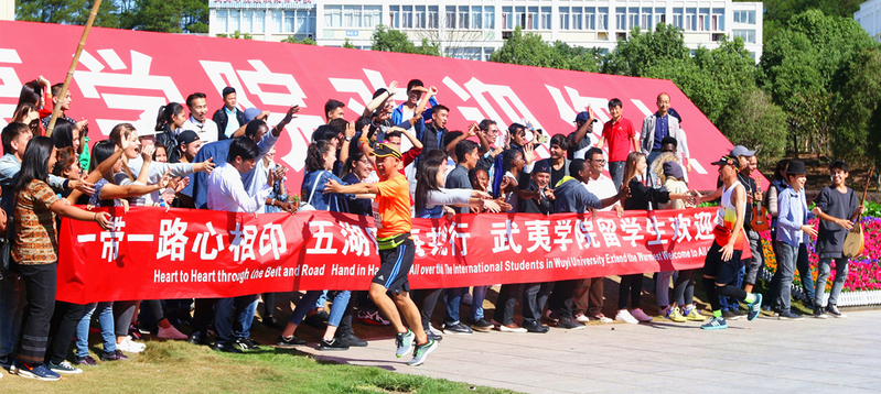 October 21, International Marathon was held in Wuyishan city. Overseas students in WYU gathered and cheered on the athletes for Marathon.