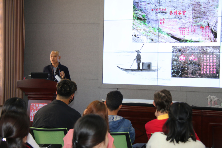 On the afternoon of November 14, the library invited Mr. Wu Baoyun, the Wuyishan stone engraver, to carry out the activity of appreciation and rubbing experience of cliff stone carving in Yifu Forum. More than 100 teachers and students from Overseas Education College participated in the activities.
